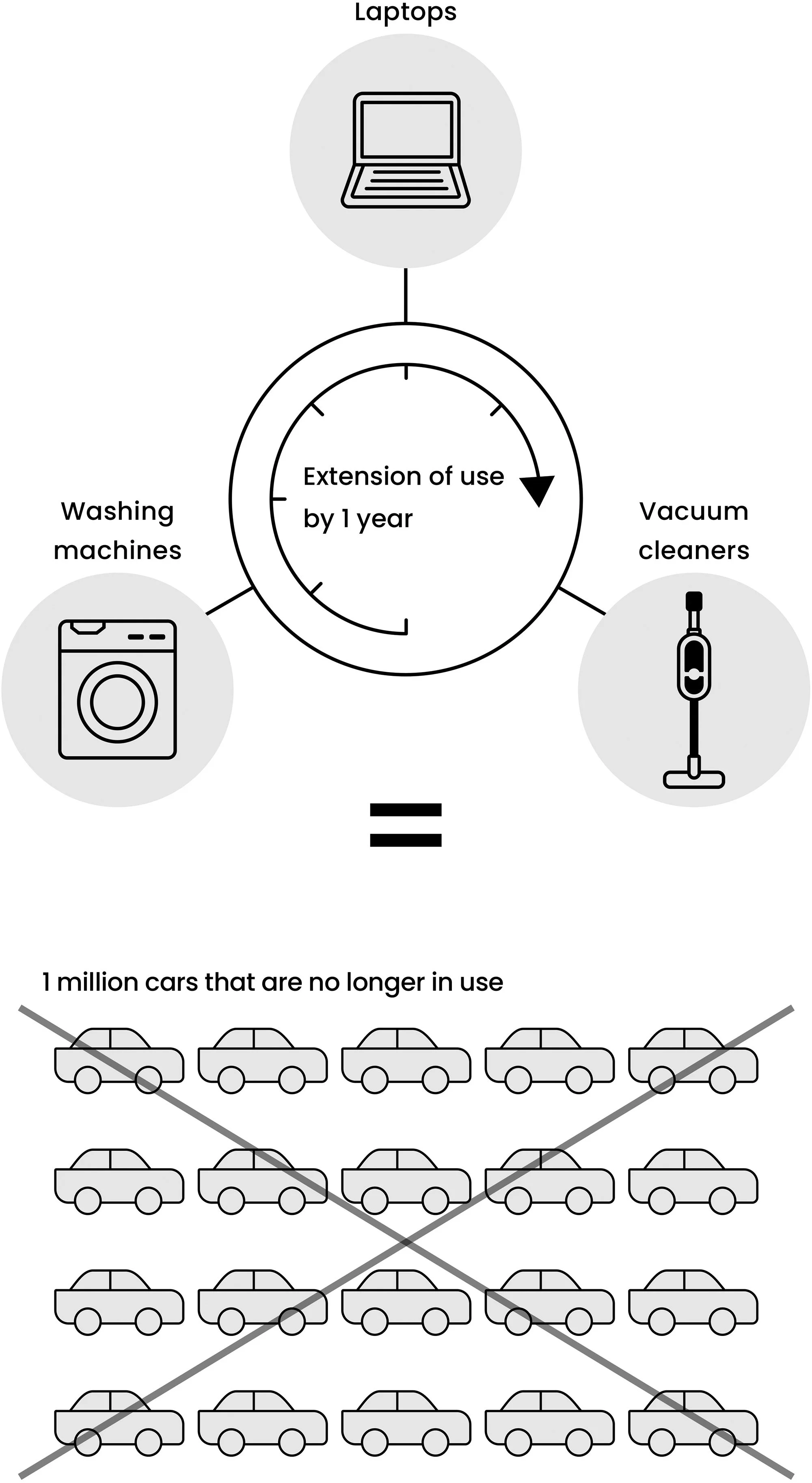 Environmental effects of an extended period of use for electrical appliances vs. a reduction in the number of cars used over a ten-year timeframe in the EU.