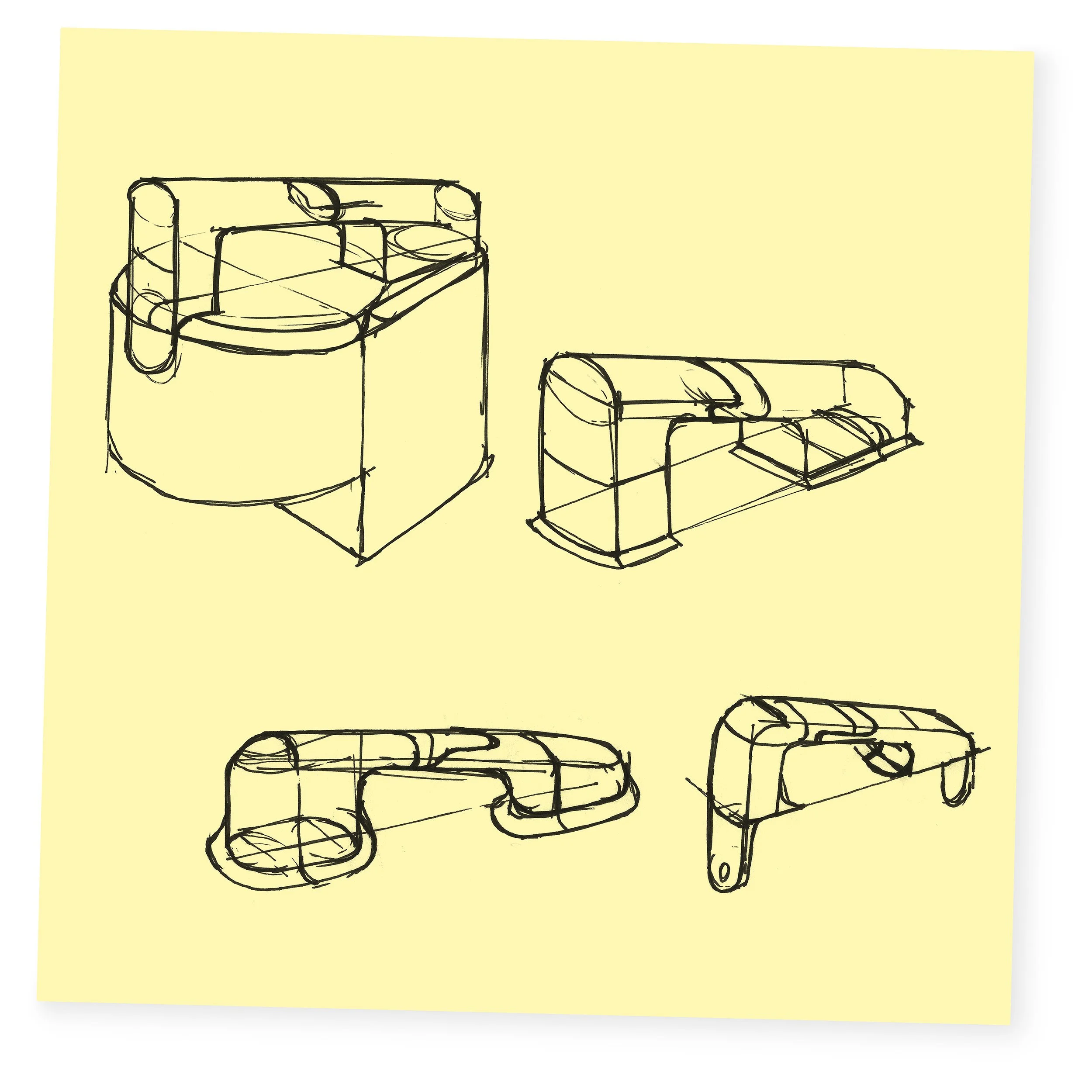 The information collected from the product and user analysis was used to create sketches and models. The models were built in full scale. They were used to test the ergonomics and the user interface of the vacuum cleaner.
